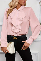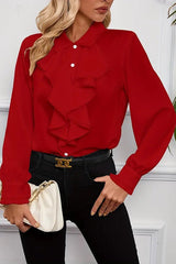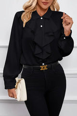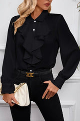 Gerüschtes, mehrlagiges Langarmhemd mit Reverskragen