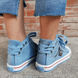 Hohe Sneaker sind der Klassiker unter den Freizeitschuhen. Unsere Sneaker "Hedwig" sind etwas Besonderes mit rockigen Details: dicke Ösen, Schnürung auf der Rückseite und dekorative Reißverschlüsse mit Bügeln verleihen dem Schuh Klasse.