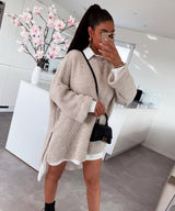 Gemütlicher übergroßer Strickpullover in sanftem Beige