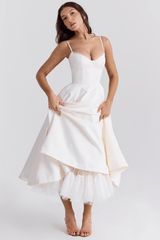 Unser 'Evelina'-Kleid vereint Eleganz und Romantik mit verstellbaren Trägern und einer voluminösen Tüllschicht, die für einen atemberaubenden Look sorgt und die Form wunderschön hält. Ideal für romantische Abende, Partys und festliche Anlässe.