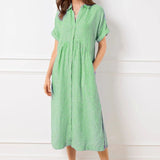 Erleben Sie einen stilvollen und bequemen Look mit diesem Hemdblusenkleid. Mit klassischen Reverskragen, vertikalen Streifen und durchgehendem Knopfleiste verleiht es Ihrem Alltagsoutfit mühelos das gewisse Etwas. Hergestellt aus leichtem Polyester mit tailliertem Schnitt sorgt es dafür, dass Sie sich beim Brunch, beim Erledigen von Besorgungen oder beim Treffen mit Freunden komfortabel und selbstbewusst fühlen. Erhältlich in den Größen S bis 4XL und in verschiedenen Farben bietet dieses Kleid einen unkomplizierten, schicken Stil, der mit Ihnen mitgeht.