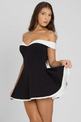 Elegantes, schulterfreies Mini-Kleid mit einem schicken Color-Block-Design. Tailliertes Oberteil mit weitem Saum, perfekt für Abendpartys, Club-Veranstaltungen oder besondere Anlässe. Eine Mischung aus Raffinesse und Kühnheit für einen atemberaubenden Look.