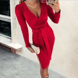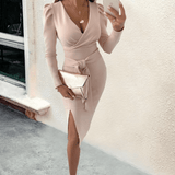 Ulaine -Langarm V-Ausschnitt Midi-Kleid