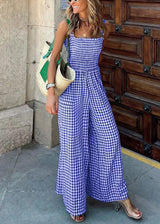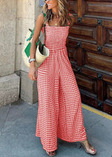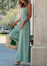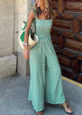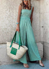 Ärmelloser grüner karierten hoch taillierter Baumwoll-Jumpsuit
