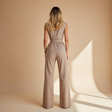 Fühle dich unwiderstehlich schick in diesem ärmellosen Jumpsuit, wo Eleganz und Komfort zusammenkommen. Mit seiner figurbetonten Passform und zeitlosen Design ist dies das perfekte Stück für Abende, an denen du auffallen möchtest, oder für besondere Anlässe mit einem Hauch von Drama.
