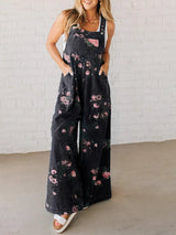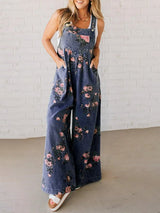 Floraler Wasserfall Weite Jeans-Overalls – Bequem und Stilvoll für den Frühling