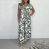 Paket enthält: 1 * Sommerlicher Jumpsuit mit gerafften, weiten Beinen und geometrischen Prints für Damen