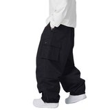 Diese Schneehose ist mit einem elastischen Bund, einem winddichten Taillenschutz, zwei schrägen Taschen mit Reißverschluss, zwei Gesäßtaschen und zwei Cargotaschen ausgestattet; die Innenseite der Oberschenkel ist mit einem Reißverschluss versehen, damit die kalte Luft zirkulieren kann.