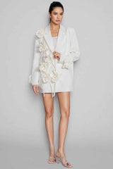 Treten Sie selbstbewusst auf mit einem Blazer, der moderne Raffinesse und romantische Kunstfertigkeit in perfekter Harmonie vereint. Gefertigt mit einer schlanken, maßgeschneiderten Silhouette und verziert mit 3D-Blumenapplikationen, verwandelt er selbst das schlichteste Outfit in ein elegantes Statement.