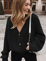 Bleiben Sie warm und stylisch mit dieser Damen-Strickjacke, die elegante Puffärmel und eine entspannte, lässige Passform bietet. Mit einer Knopfleiste gestaltet, ist sie perfekt zum Schichten im Herbst und Winter geeignet. Weich, gemütlich und vielseitig, lässt sich diese Strickjacke mühelos mit Jeans, Röcken oder Kleidern für sowohl lässige als auch schicke Looks kombinieren.