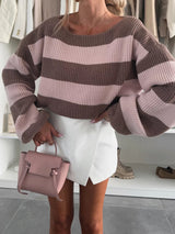 Gemütlicher gestreifter Strickpullover mit Rundhalsausschnitt