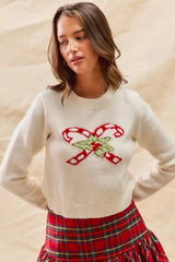 Kuscheln Sie sich ein in festlichen Charme mit einem Candy Cone Cropped Sweater