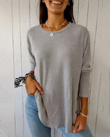 Genießen Sie einen unkomplizierten Alltagsstil mit diesem weichen, gerippten Strickshirt. Sein Rundhalsausschnitt und die eng anliegenden langen Ärmel machen es zu einem vielseitigen Stück, perfekt zum Schichten oder solo tragen zu jeder Jahreszeit. Die einfarbige Optik sorgt für einen schlanken, gepflegten Look, der mühelos zu Jeans, Röcken oder maßgeschneiderten Hosen passt. Erleben Sie atmungsaktiven Komfort und sanfte Dehnbarkeit, die sich den ganzen Tag über mit Ihnen bewegen.