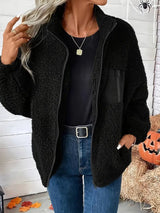 Bequemlichkeit trifft Stil: Luisa Reißverschluss vorne Drop Shoulder Teddy Jacke!