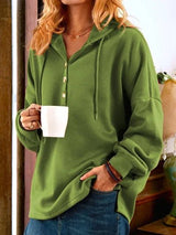 ✅ Einzigartiges geknöpftes Detail: Die markante geknöpfte Vorderseite verleiht dem Sweatshirt einen einzigartigen und stilvollen Touch, der es von einem einfachen Pullover zu einem modischen Statement macht.