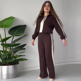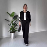 Verleihen Sie Ihrem Look Eleganz mit einem schicken schwarz-weißen 2-teiligen Set mit verstellbarem Reißverschlusskragen & bequemem elastischem Bund