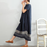 Elegantes blaues Leinen-Sommerkleid in Oversize – Bequemes & Stilvolles Maxikleid mit Ausschnitt