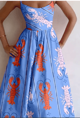 Bringe frischen Wind in deine Sommergarderobe mit diesem auffälligen Midikleid im Hummer-Print! Ideal für den Strand, den Urlaub oder einen entspannten Tag in der Stadt – dieses Kleid vereint verspielten Charme mit einem lässig-femininen Stil.