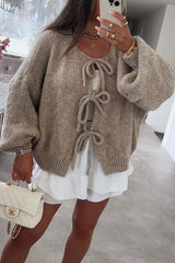 Gemütlicher V-Ausschnitt Strickpullover mit Schnürung