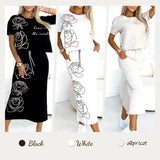 Entdecke die perfekte Kombination aus Komfort und Stil mit unserem 2-teiligen minimalistischen Rosen-Print Set. Für moderne Frauen entworfen, die Wert auf schlichte Eleganz legen, bietet dieses Set ein klassisches T-Shirt und einen stilvollen Midi-Rock. Ob für den Alltag oder besondere Anlässe – dieses Outfit sorgt immer für einen eleganten und unkomplizierten Look.