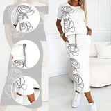 Mühelose Eleganz: 2-teiliges Minimalistisches Rosen-Print Set