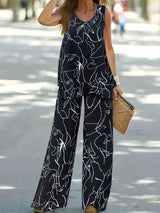 Set aus Oberteil mit abstraktem Druck und Rundhalsausschnitt sowie Hose